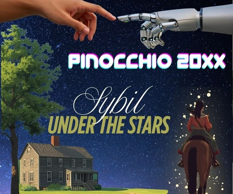 Sybil Under the Stars tells the true story of a Connecticut girl whose Paul Revere-esque ride prepared the Colonial militia to face and turn back a British invasion. In Pinocchio 20XX, we jump from our revolutionary era past to the near future, where an artificial intelligence Pinocchio, created by a gaming designer, longs to find his own way to becoming a real boy.